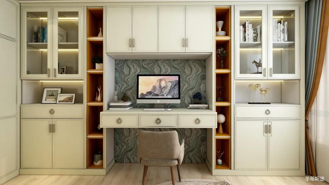 象牙白色调让入室空间散发着温柔的气息,定制玄关柜上轻奢金属线条的加持,洋溢着一种不加雕饰的美感,色泽素雅,纹理精致,于内敛沉静中,感受入户空间的气质。